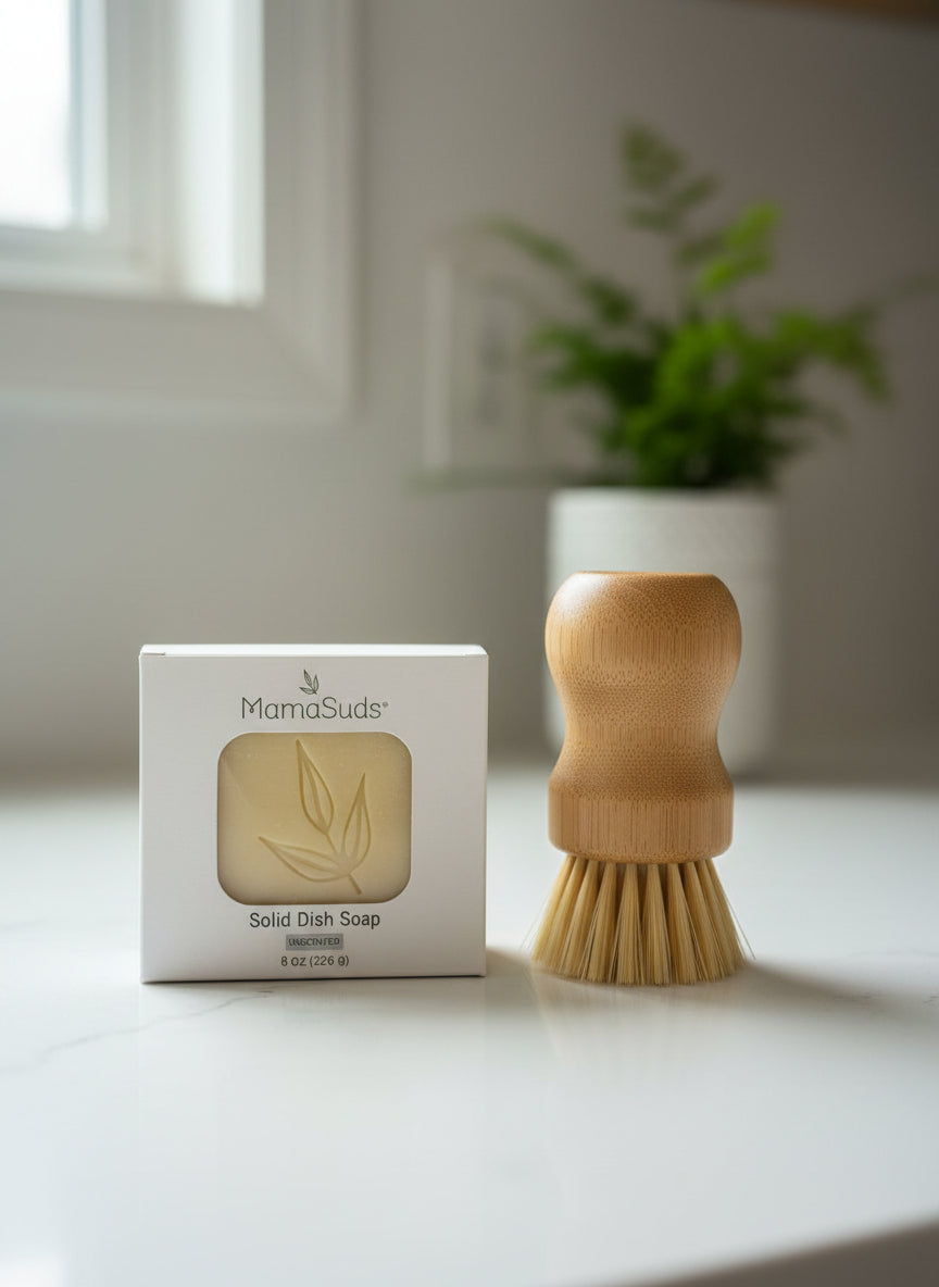 To use: Pair with an eco-friendly brush or scrubby to apply to your dishes (we love sisal scrubbies!). Re-lather as needed.